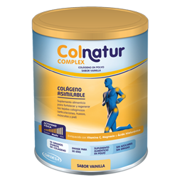 Colnatur® COMPLEX es un suplemento alimenticio a base de proteína de colágeno hidrolizada (natural, muy asimilable y pura) enriquecida con vitamina C, ácido hialurónico y magnesio para cuidar articulaciones, huesos, músculos y piel.
